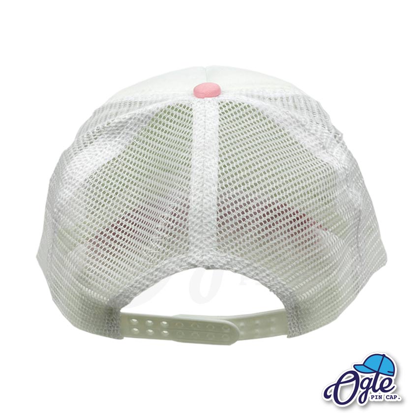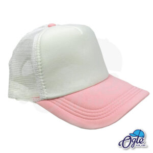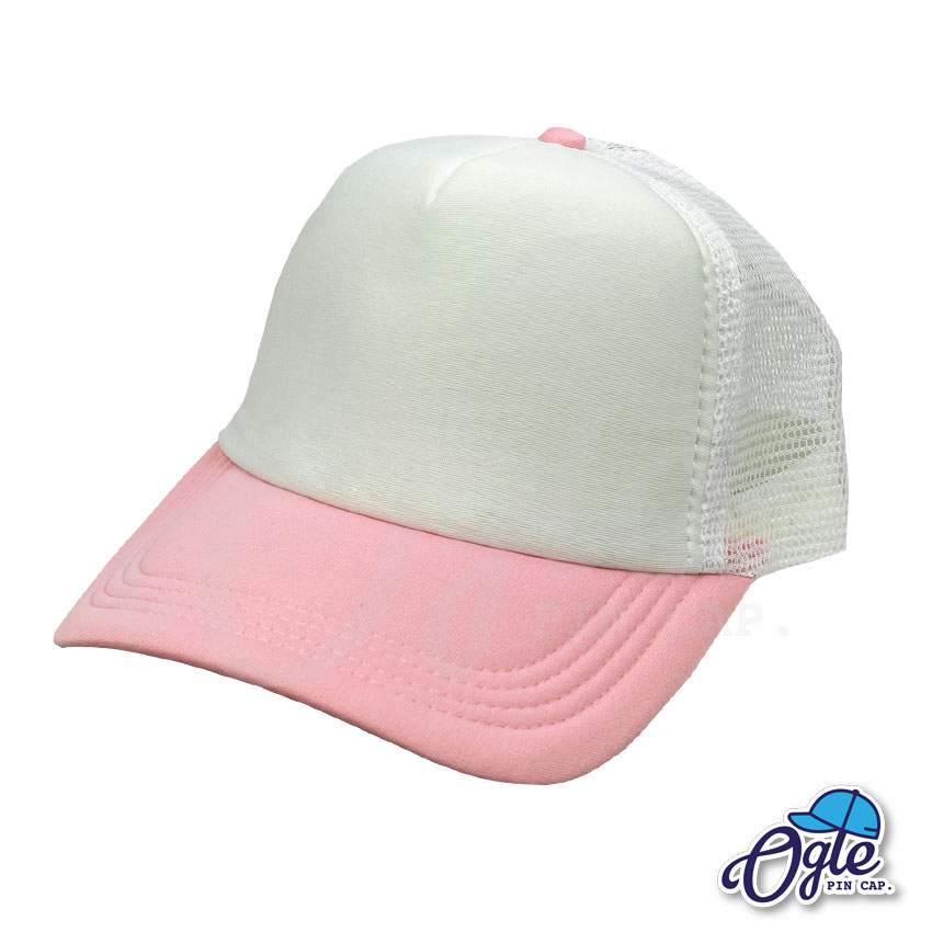 หมวกตาข่าย ปีกหมวกสีชมพูอ่อน หน้าหมวกและตาข่ายสีขาว