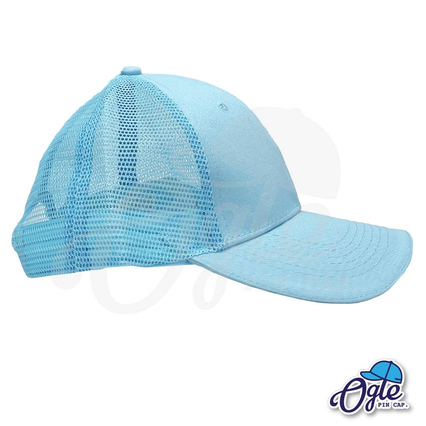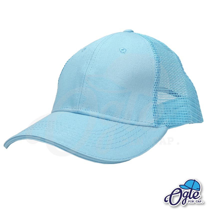 หมวกตาข่าย วินเทจ หน้าผ้า สีฟ้า